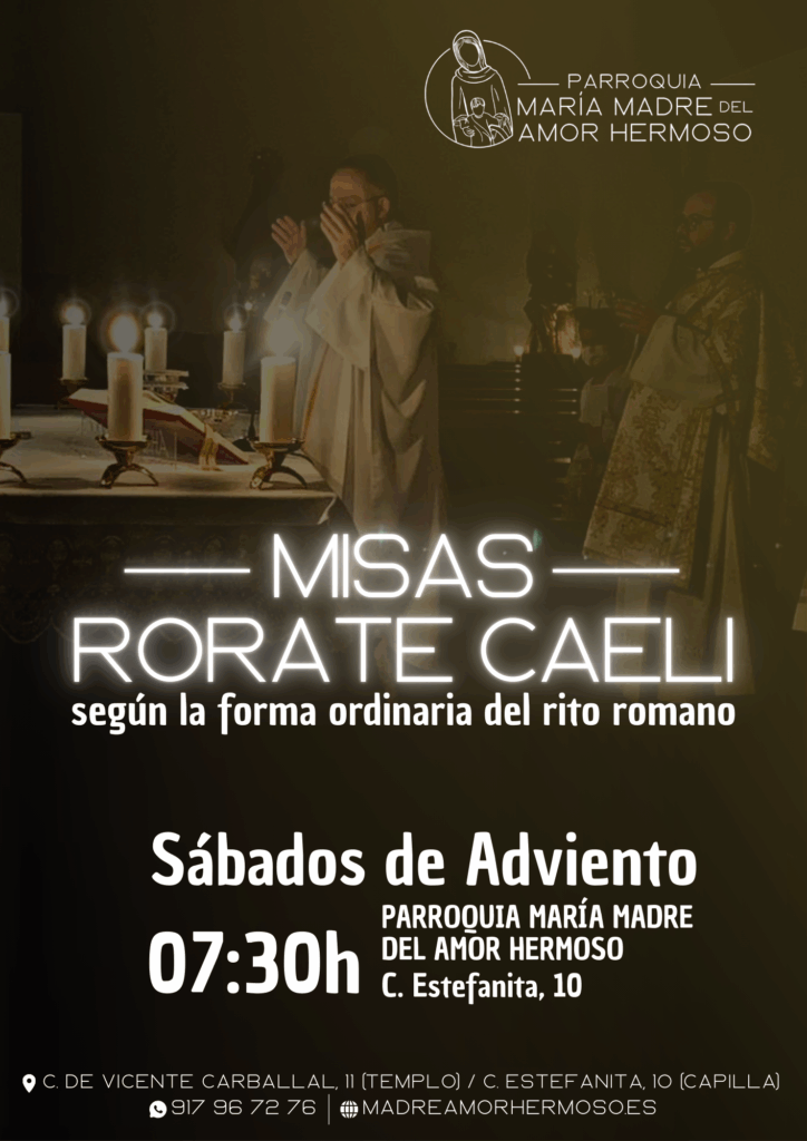 Durante los próximos sábados del tiempo de Adviento (6, 13 y 20 de diciembre de 2025) en nuestra Capilla de Estefanita, 10 celebraremos a las 7:30 h de la mañana las «Misas Rorate Caeli».